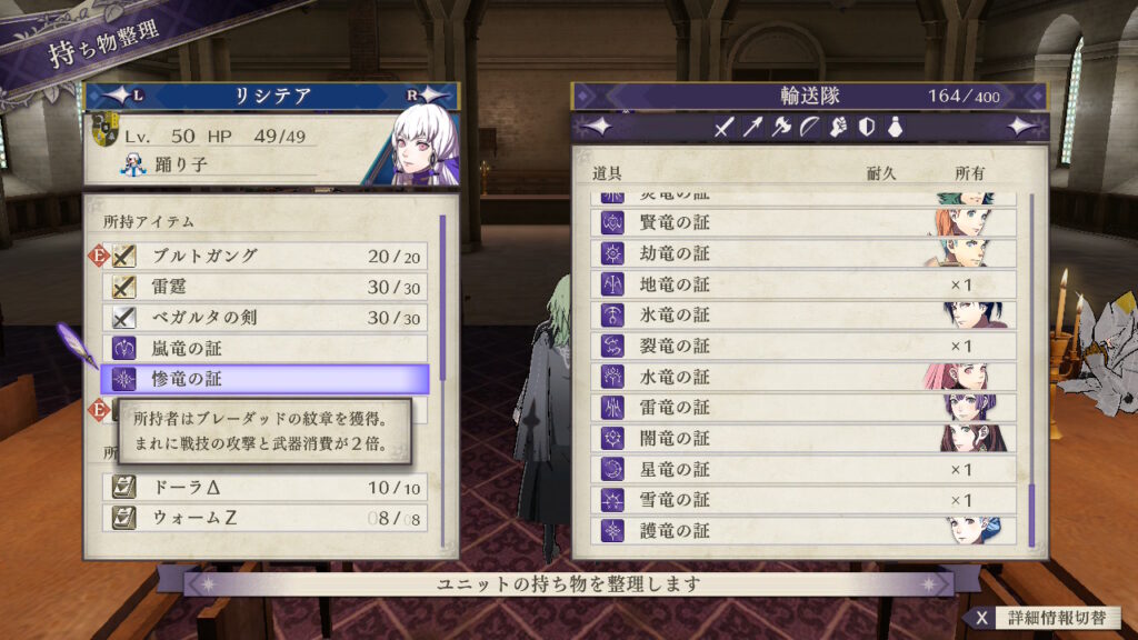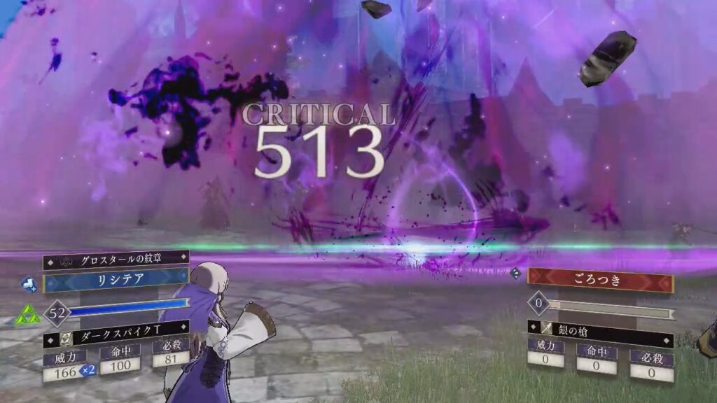 ディミトリの時点でもヒューベルトや覇骸エーデルガルト、ミュソンといった色んなスキルを持つ相手にどうやってカンストを狙うかは考え、主人公専用の「聖なる力」やドゥドゥーや主人公の支援強化を使えばいけるのでは?と思い浮かんだりで達成できた(覇骸エーデルガルトは断念しできる限りの900超えダメージを出した)のだが、リシテアちゃんはそれ以上。