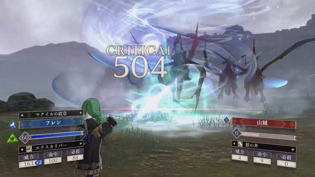 (技 + 幸運)÷2 + (武器か魔法の必殺) + 戦技の必殺 + スキルの必殺 + 騎士団の必殺 - (敵の幸運 + 敵のスキルの必殺回避補正)