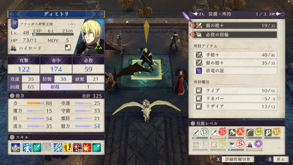 支援会話回収のために青獅子の学級編を再プレイしている中で、ディミトリの無惨のダメージを見て「カンストいけるのでは?」と思ったので狙ってみた次第。