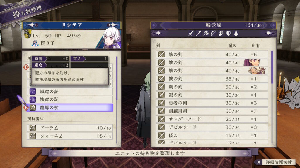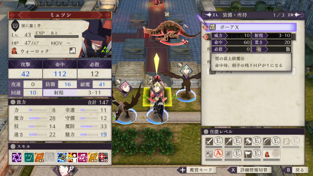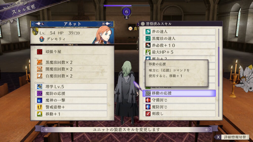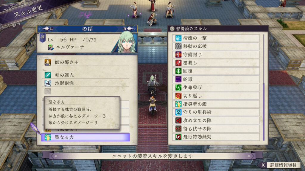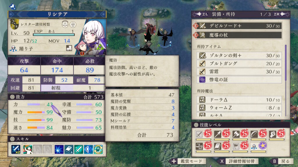 魔法剣の威力が魔防によって増加するという効果なので、魔防をなるべく盛らせることも重要だと考え、スキル一覧や装備とにらめっこする時間が長かった。