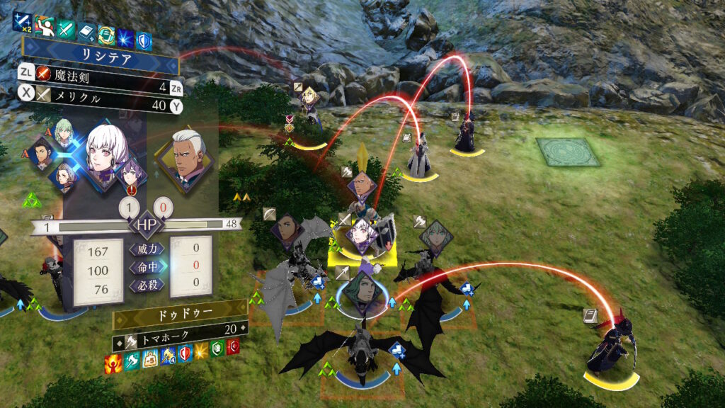 連携攻撃3名分に関しては、敵への攻撃範囲を満たしているキャラのうち威力が高いもの、支援ランクが高いものの順に自動的に優先的に選ばれる。