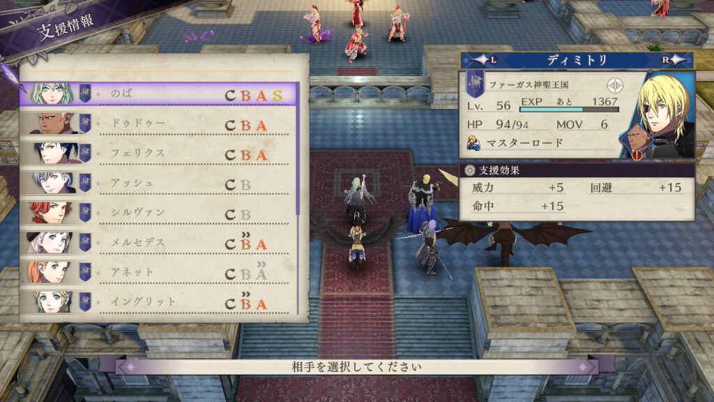 一番困ったのが、ディミトリのように支援強化できる相手がいないこと。