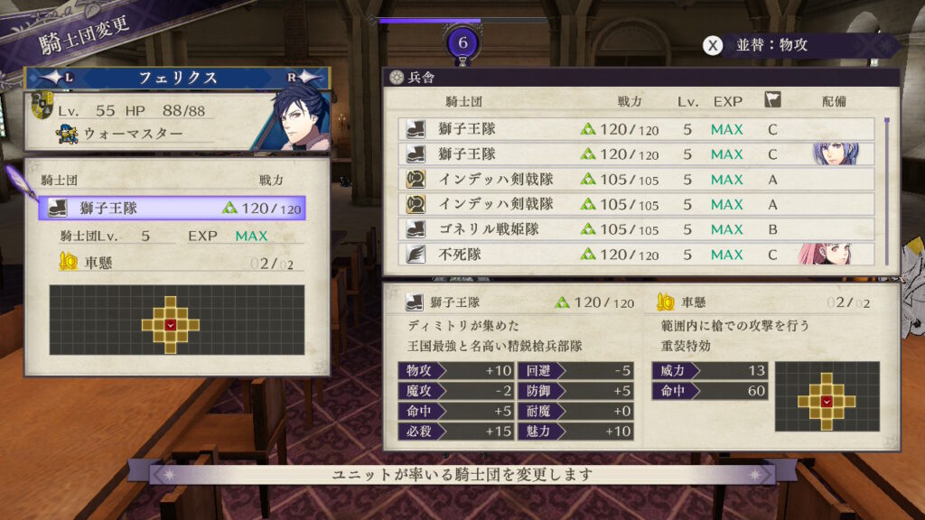 | フェルディナント (騎馬) | 防御28 耐魔11 | 防御が高めだがカンストが狙えない域ではなく、耐魔に関しては金鹿の学級編最終戦のフォドラ十傑程度のものなので、物理・魔法のどちらでもカンストは狙える。 但し、ラディスラヴァを倒すかフェルディナントとの戦闘が始まると同じエリアに増援として入って来る同盟軍の存在が位置取りの難易度を上げる |