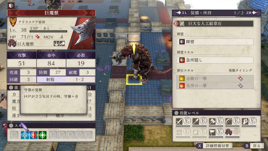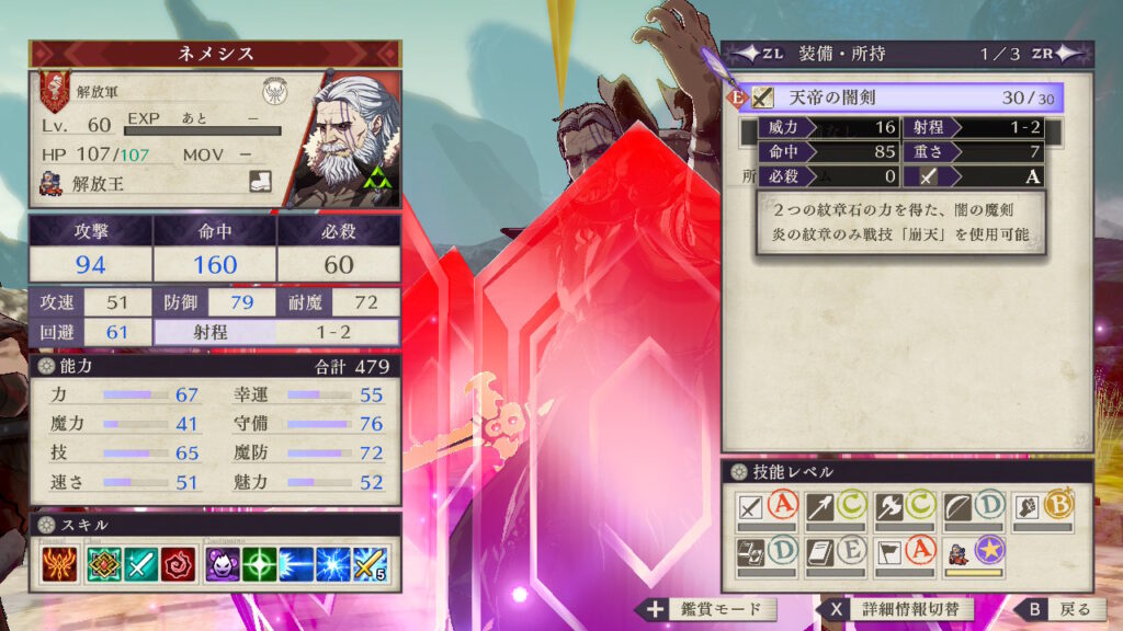十傑バフ全開状態では難易度ノーマルでも防御・耐魔共に70超えという恐るべき数値を誇る、金鹿の学級編のラスボス・ネメシス