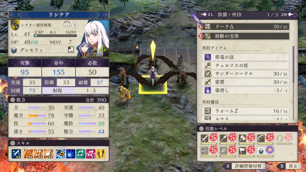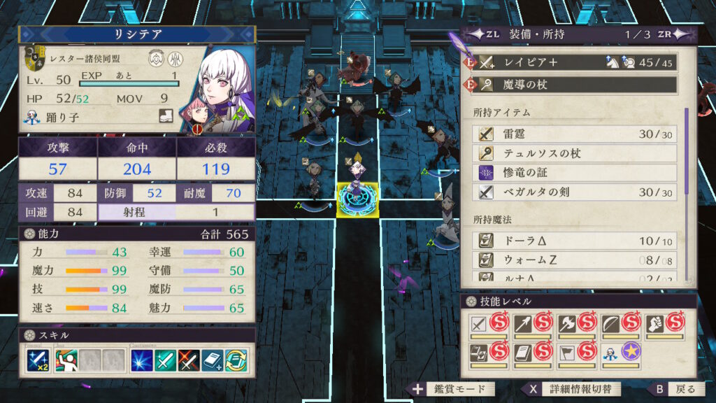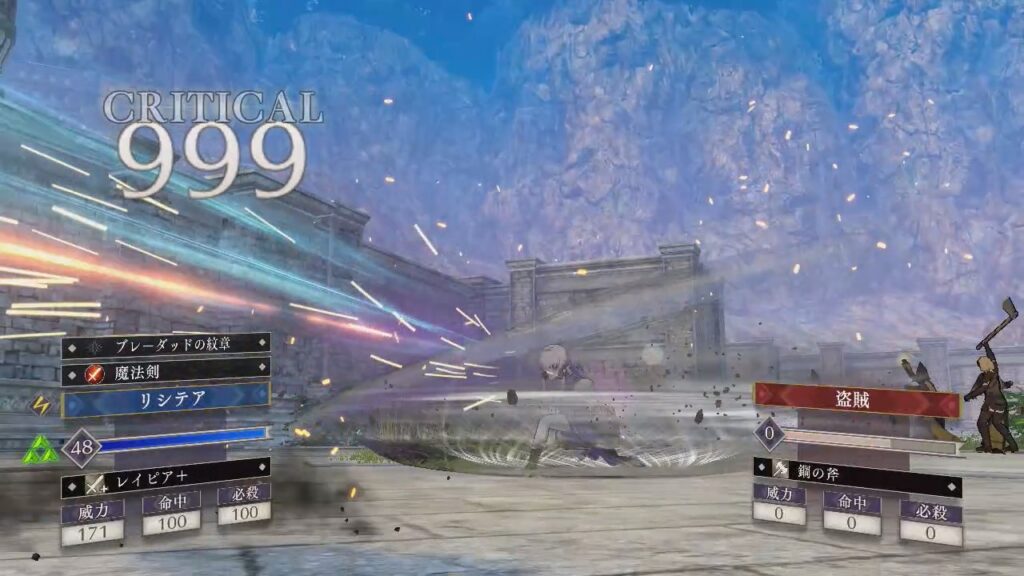しかしディミトリのような物理攻撃でのダメージカンストは、リシテアの基礎ステータスの力上限30では流石に無理がある。