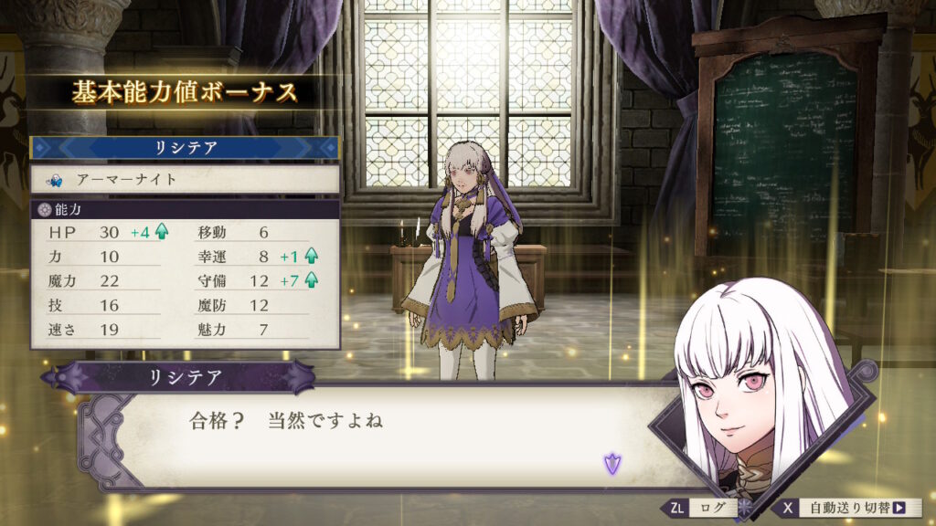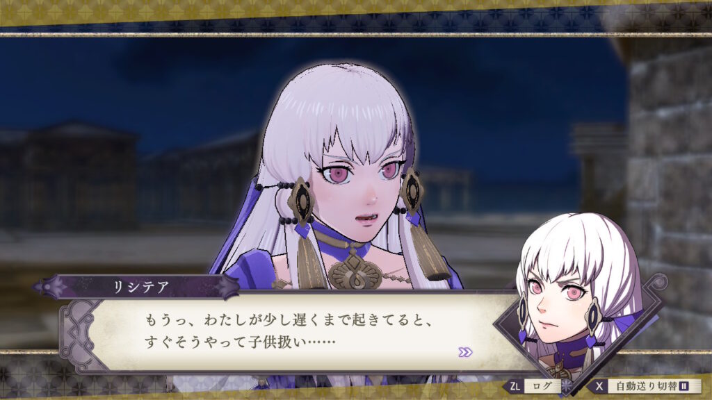 リシテアちゃんは他の生徒同様、ディミトリとは違ってセリフが変わるのは第2部移行時のみ。
