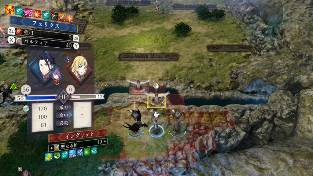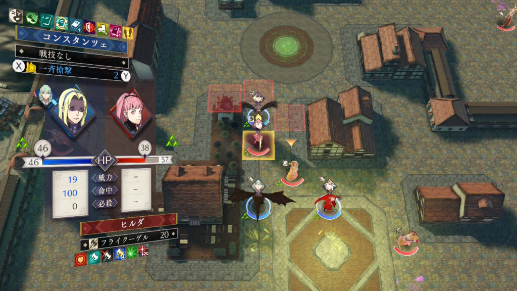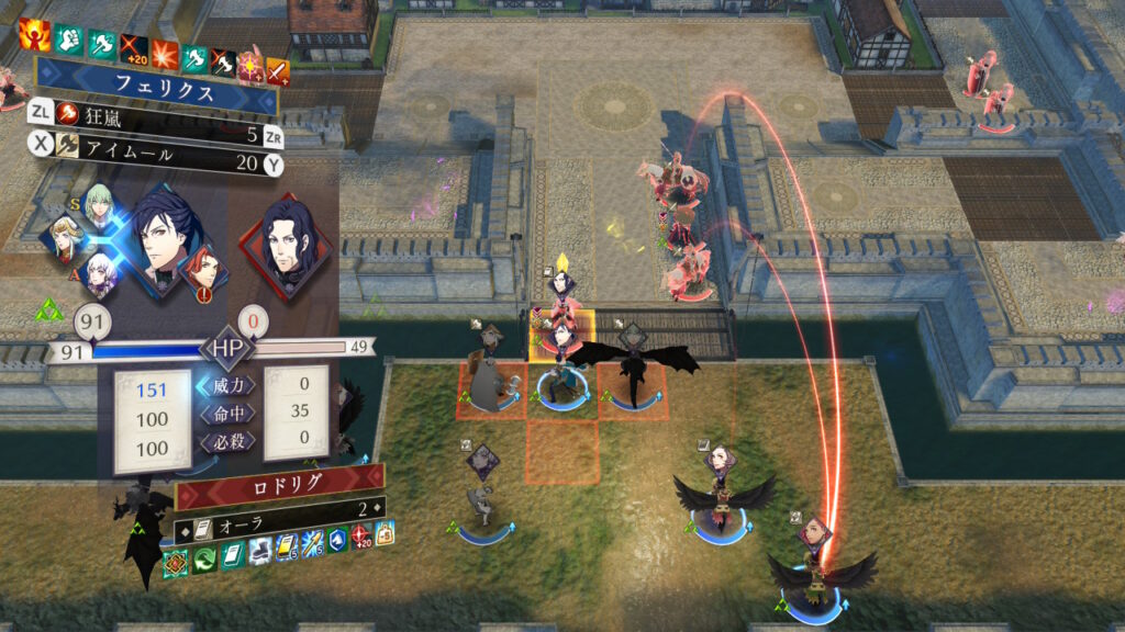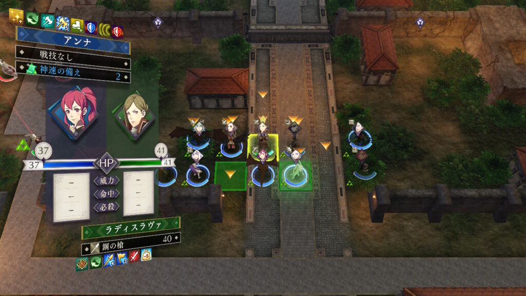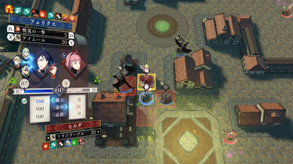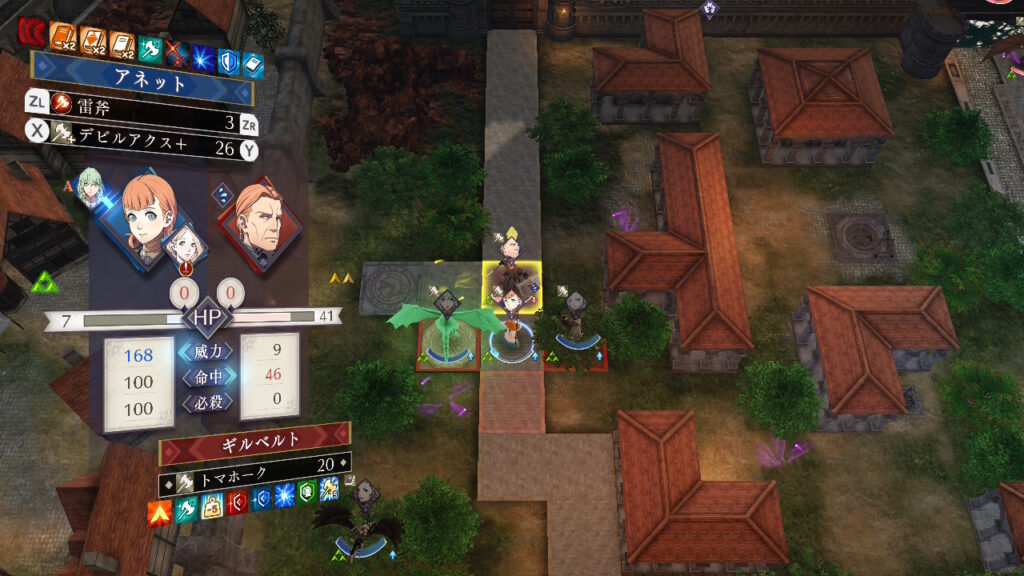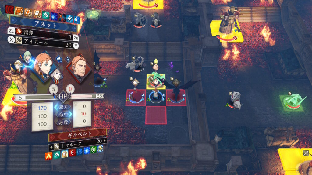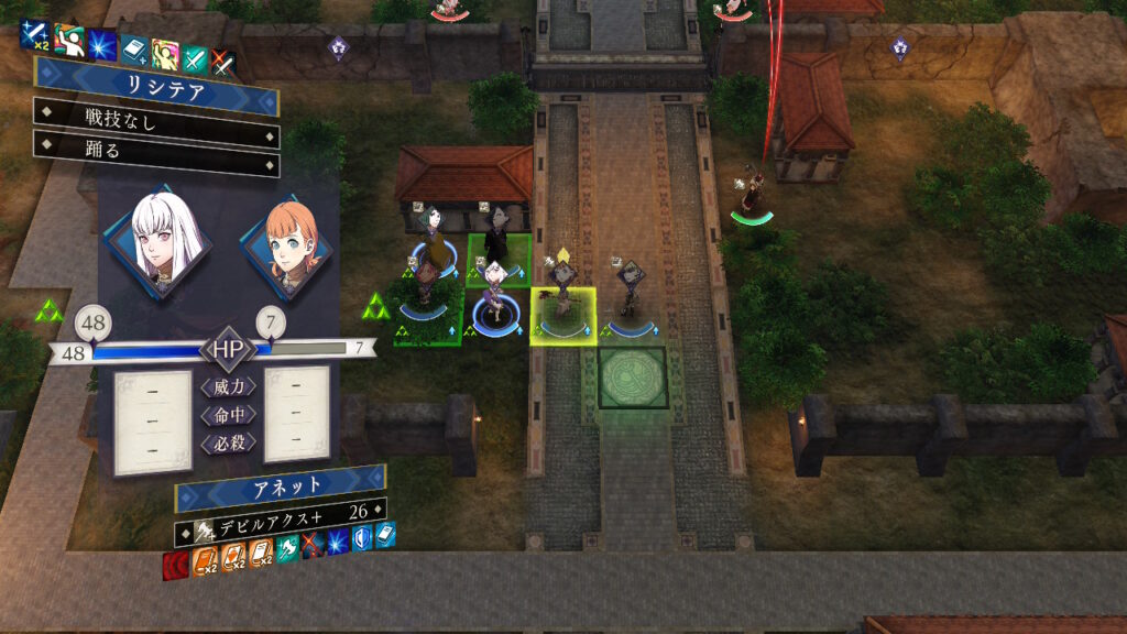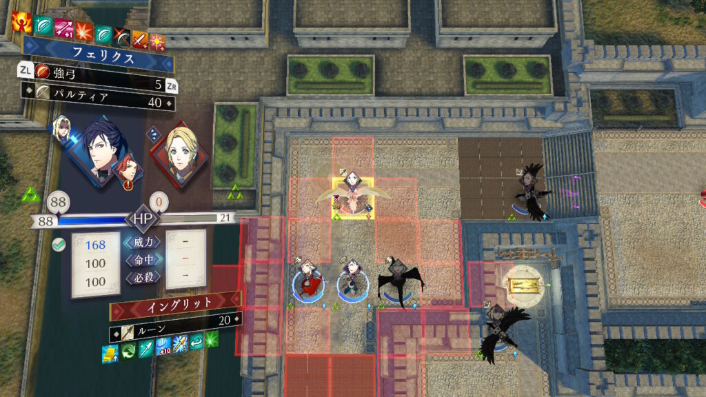 隣接スキルを持つ主人公とエーデルガルト、及び計略要員(飛行兵種)はその間にギルベルトの付近に向かわせ、主人公は神祖の加護を使用、計略要員は計略を命中させておく。