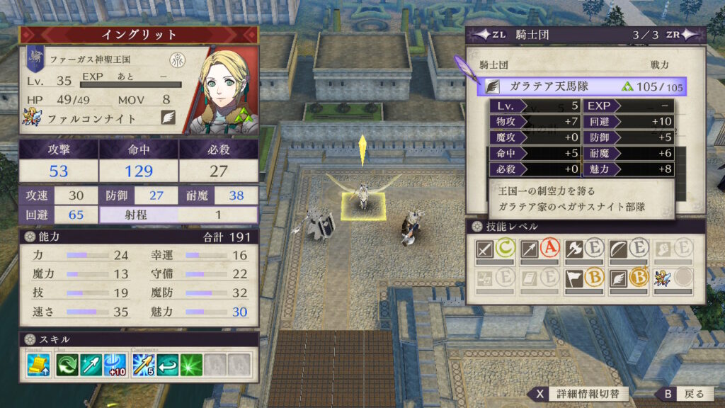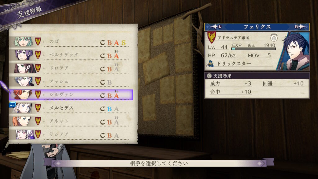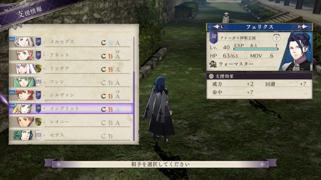 エーデルガルトルートでイングリットやシルヴァンをカンスト狙いで殺す場合、彼らをスカウトしないことになるのでその分だけ支援連携を失い威力が下がることには注意。
