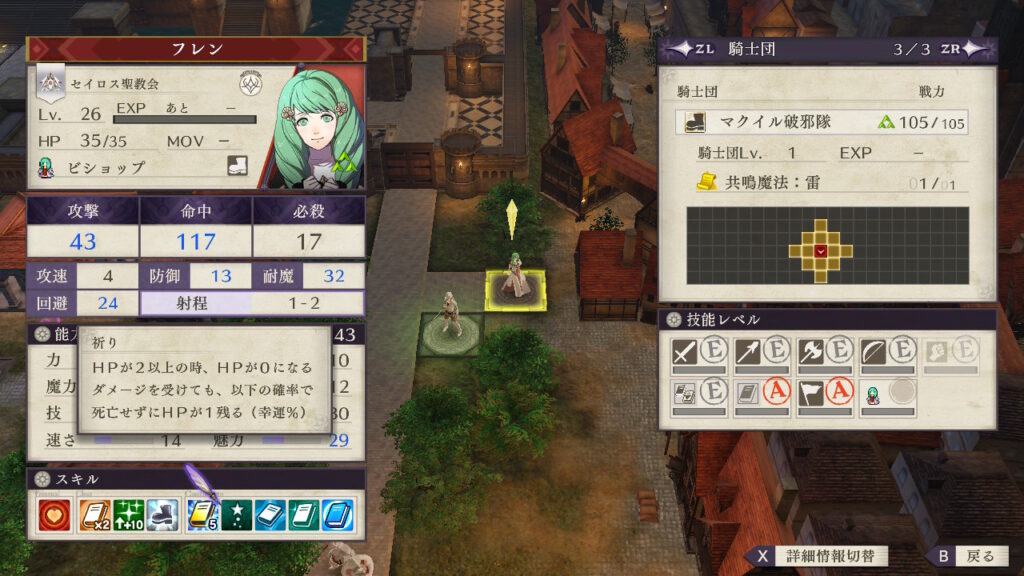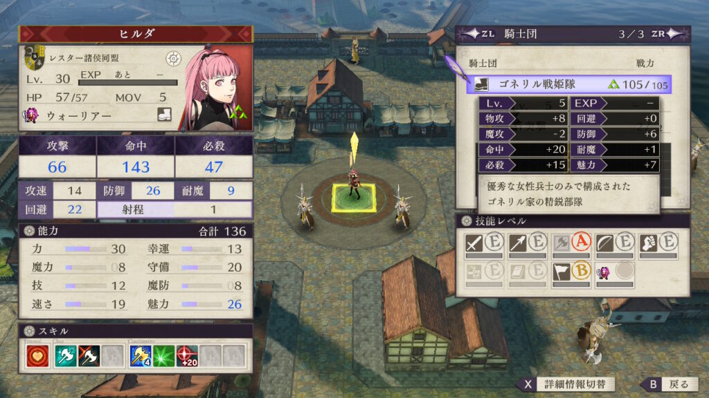 女性キャラなのでウォーマスター(戦鬼の一撃)にも勇者(力の覚醒)にもなれないので、男性キャラに比べるとパワー不足が目立つ。