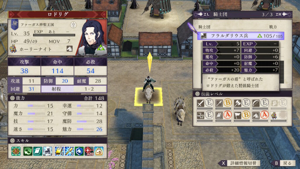 クロードルート最終戦のフォドラ十傑・ブレーダッドと同じくトライはしやすい方ではあるが、騎馬特効無効大将星を持つためカンストは不可。
