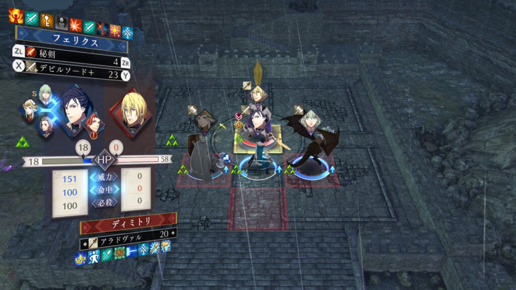 フェリクスが力の覚醒を発動させる場合、初手で遥か前方へ飛ばしてデビル武器で反撃させる。
