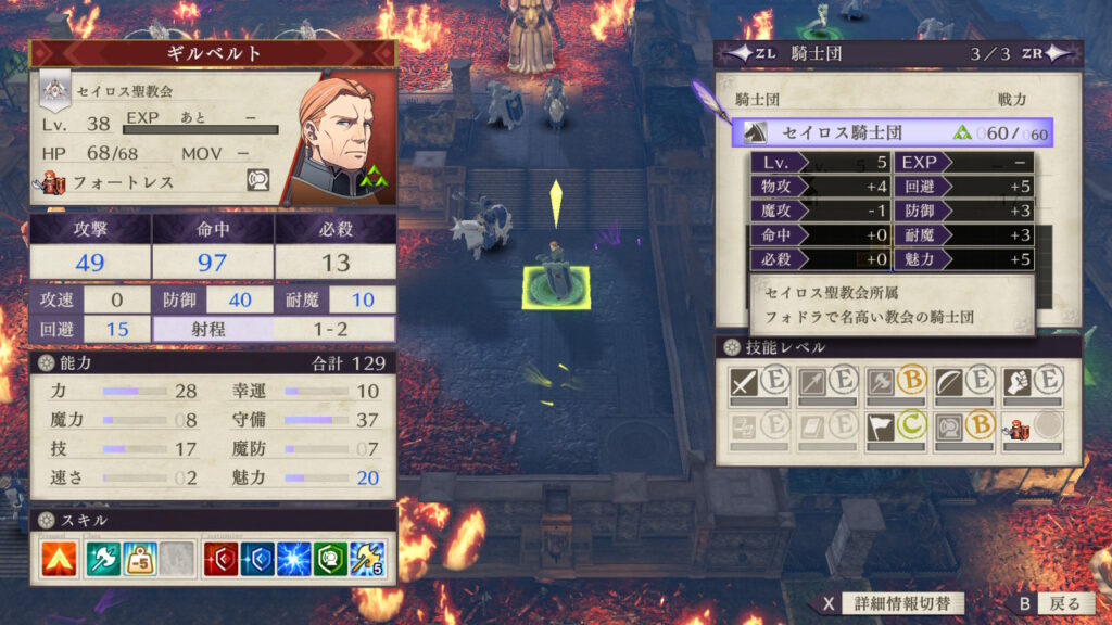 前述のクロードルートでのグロンダーズ会戦の個体と異なり、防御がやや高め且つ砦から動かないのでカンストに届かない。
