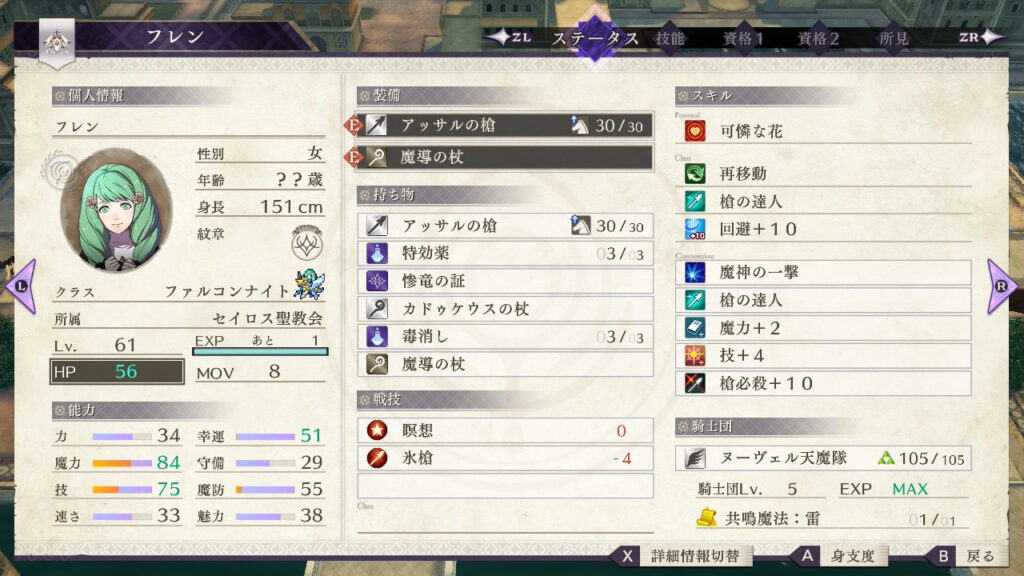 フレン加入時早々にペガサスナイトの試験を受けることができるので、そんなに苦戦することはないはずですわ。